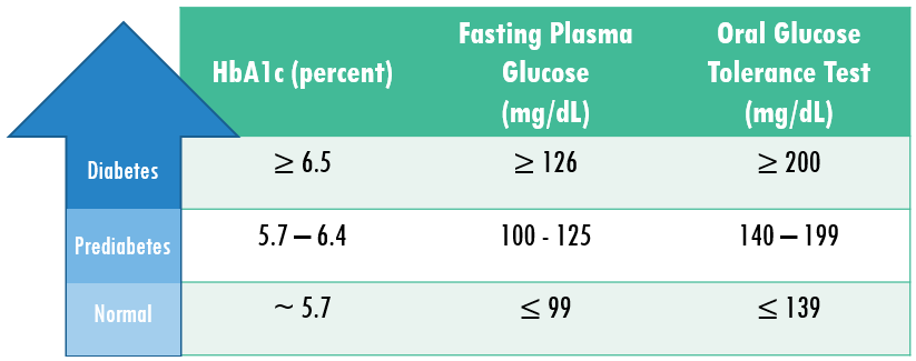| FBS | < 100 mg/dL | 100–125 mg/dL | ≥ 126 mg/dL |