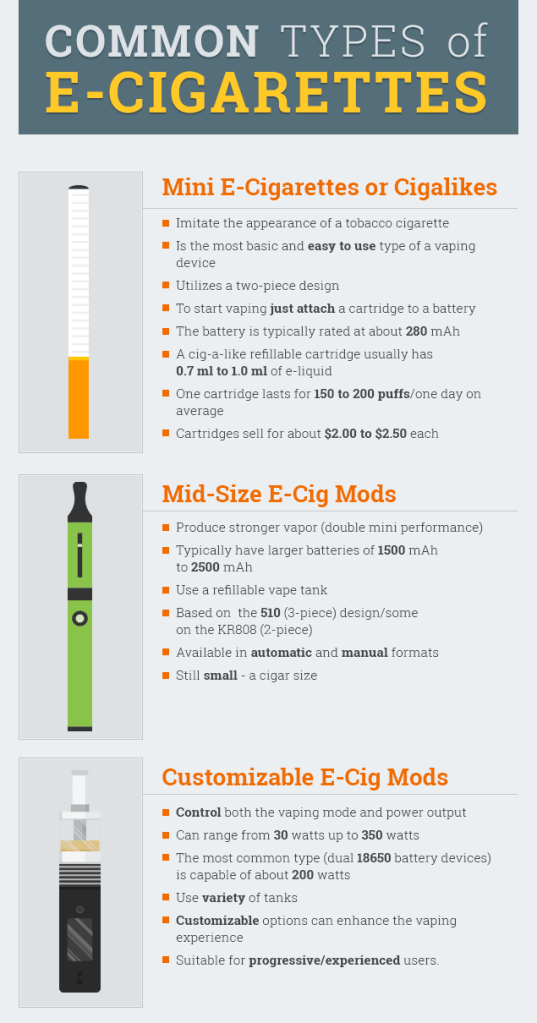 You don’t actually light up an e-cig; they’re powered by a rechargeable lithium battery. Instead of burning tobacco, the “e-liquid” is vaporized in a heating chamber when the user inhales.