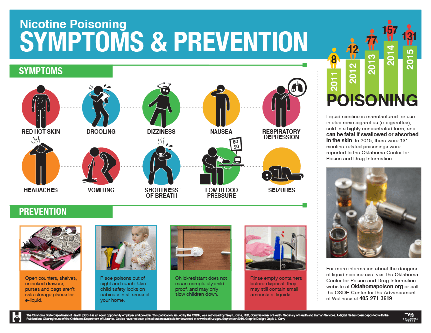 Sometimes it comes in colorful packages or smells like candy, so it’s not surprising that kids will drink it. As little as 1 teaspoon of liquid nicotine can be fatal for the average 26-pound toddler.