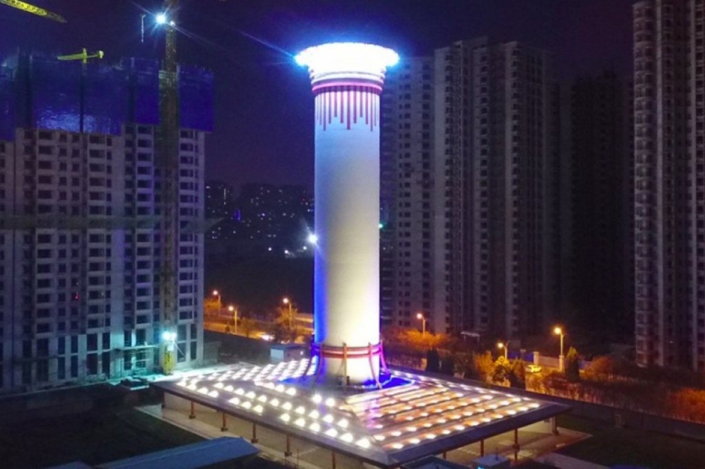 A 100-metre high air purification tower in Xian in Shaanxi province has helped reduce smog levels in the city, preliminary results suggest