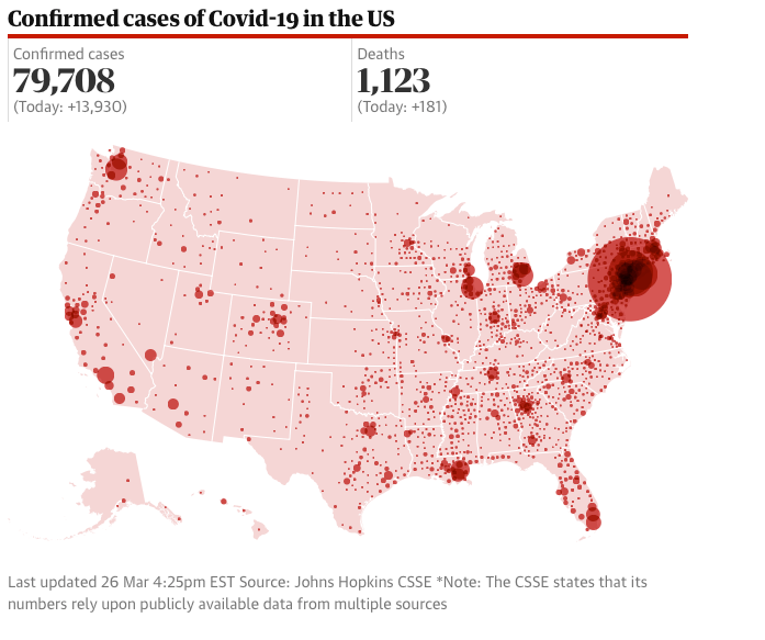 Last updated 26 Mar 4:25pm EST Source: Johns Hopkins CSSE *Note: The CSSE states that its numbers rely upon publicly available data from multiple sources