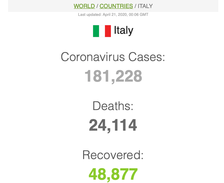 - Italy reports lowest number of deaths in a week, while the pace of new infections also slowed. Spain registered its lowest daily death toll in almost a month.